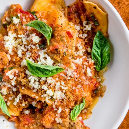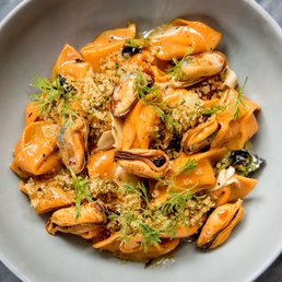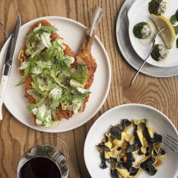 Clean lines and curves in all the right places make for a gorgeous space to enjoy an elevated Italian meal in this elegant establishment that seems to be a hit with the cool set Downtown. Don Angie has stellar food an expansive list of wines, cocktails and other libations but I have to give the design team the most kudos because the space is simple but also sophisticated and stunning. The food here is obviously very good and family style dining may not be the most ideal way to enjoy a meal here for a large group since there's little pleasure in having A single gnocchi or bite of chicken. The consensus among our group found the BBQ calamari to be the single best dish with the superbly delicious pepperoni fried rice providing superb flavor to complement the calamari and herbed labneh...I'm not sure how much exactly a bushel is, but I'm certain I could easily make my way through a bushel of this dish with no hesitation or issue. The lasagna is a "made for the 'gram" dish that I would recommend trying, but at the end of the day, it's lasagna and temper your expectations because it's going to be neither the best or worst you've had. The desserts are good with the mochi being a nice attempt at something different and the black cocoa tiramisu being decadent and delightful with a unique combination of marsala caramel and crispy feuilletine. The service maxed out "OK" but nothing stood out and they could certainly go a lot farther with a more genial attitude.